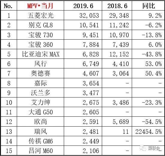 - 6月份MPV销量12.1万辆,同比下降8.1%,环比增长12.1%;上半年累计销量70.0万辆,同比下降19.4%。