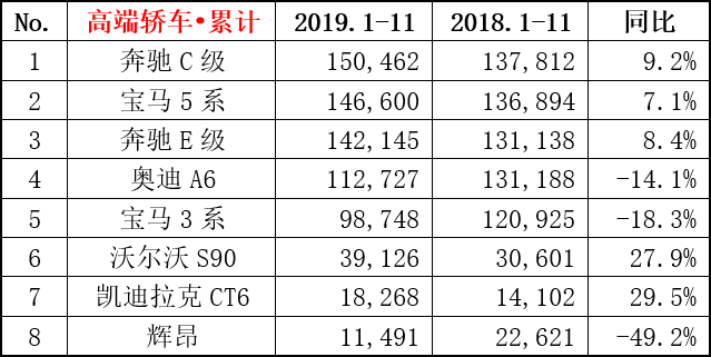 - 11月份轿车销量93.2万辆,同比下降9.0%,环比增长7.0%;1-11月累计销量913.0万辆,同比下降9.4%。