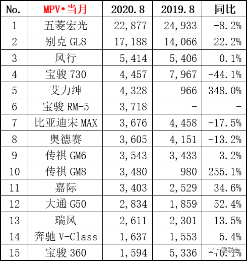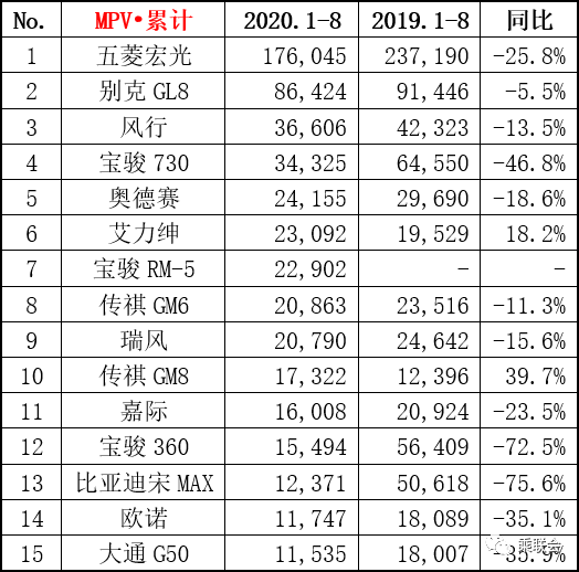 • 8月份MPV销量9.9万辆,同比增长0.9%,环比增长3.5%;累计销量62.7万辆,同比下降29.9%。