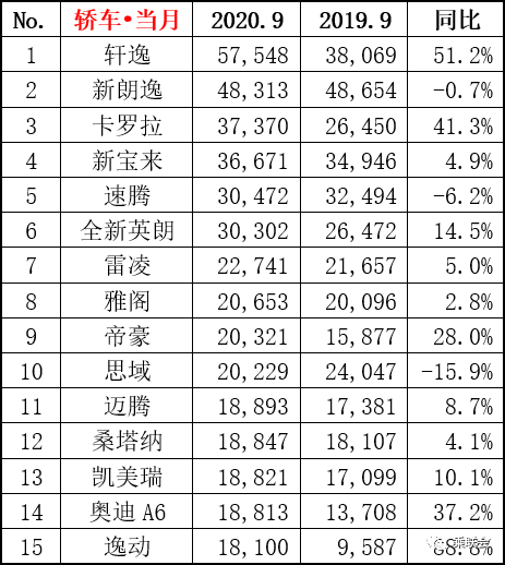 9月车系:在入榜的车企中,德系车(四家)合销49.5万辆;日系车(五家)合销44.3万辆;自主品牌(五家车企)合销42.6万辆;美系车(上汽通用)本月大涨18.7%;德日中呈鼎力之势。