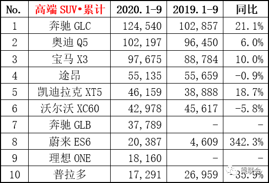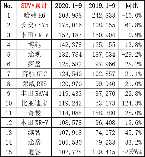 ·9月份SUV销量87.6万辆,同比增长8.5%,环比增长11.9%;累计销量596.4万辆,同比下降7.3%。