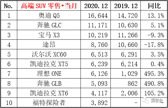 高端SUV榜单