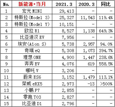 ·3月份新能源狭义乘用车销量18.5万辆,同比增长239.6%,环比增长90.9%;累计销量43.7万辆,同比增长302.9%。