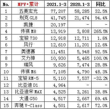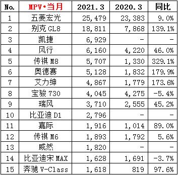 ·3月份MPV销量10.6万辆,同比增长54.8%,环比增长65.7%;累计销量28.3万辆,同比增长53.2%。