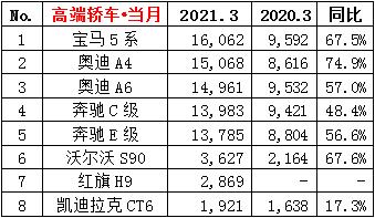 据中国汽车流通协会汽车市场研究分会(乘联会)最新零售销量数据统计,3月份国内狭义乘用车市场销量达175.2万辆,同比增长67.2%,环比增长48.6%;1-3月份累计销量509.2万辆,同比增长68.8%。