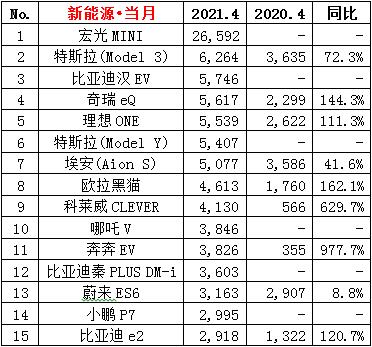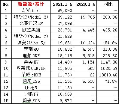 ·4月份新能源狭义乘用车销量16.3万辆,同比增长192.8%,环比下降12.0%;累计销量60.0万辆,同比增长265.6%。