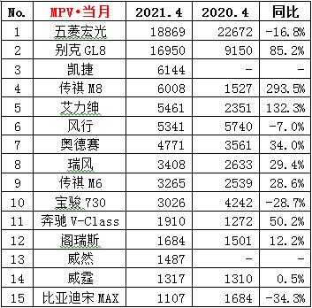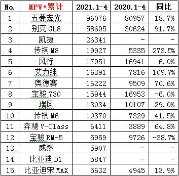 ·4月份MPV销量9.1万辆,同比增长21.1%,环比下降14.1%;累计销量37.4万辆,同比增长43.9%。