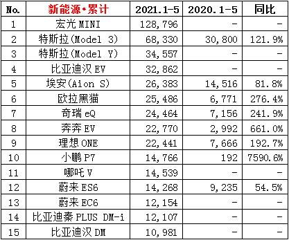 ·5月份新能源狭义乘用车销量18.7万辆,同比增长180.1%,环比增长16.1%;累计销量77.8万辆,同比增长236.6%。