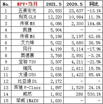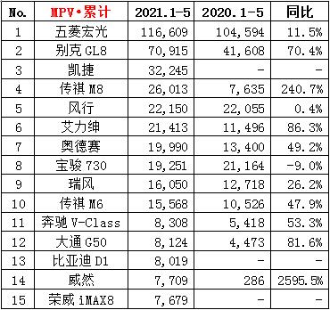 ·5月份MPV销量9.5万辆,同比增长12.0%,环比增长3.8%;累计销量47.3万辆,同比增长37.2%。
