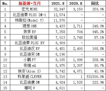 新能源乘用车榜单
