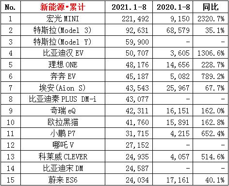 ·8月份新能源狭义乘用车销量25.0万辆,同比增长168.0%,环比增长12.3%;累计销量148.0万辆,同比增长202.4%。