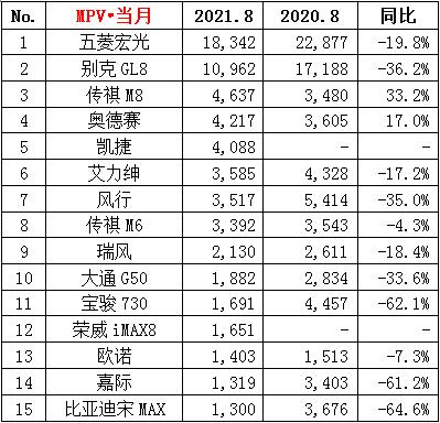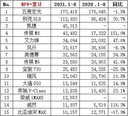 ·8月份MPV销量7.7万辆,同比下降22.1%,环比下降11.6%;累计销量72.7万辆,同比增长15.9%。