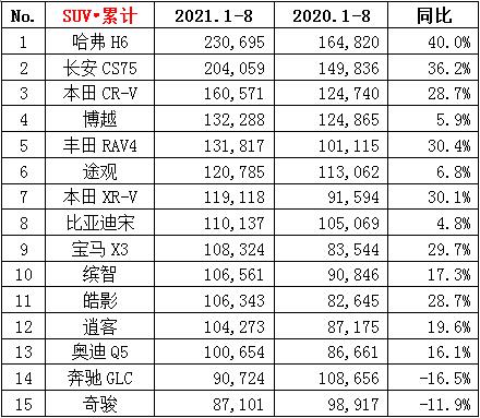 ·8月份SUV销量64.0万辆,同比下降18.3%,环比下降7.8%;累计销量588.7万辆,同比增长15.7%。