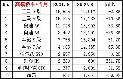 ·8月份轿车销量73.4万辆,同比下降10.7%,环比增长1.8%;累计销量628.5万辆,同比增长18.5%。