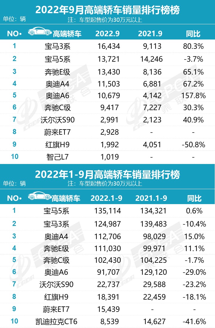高端轿车榜单