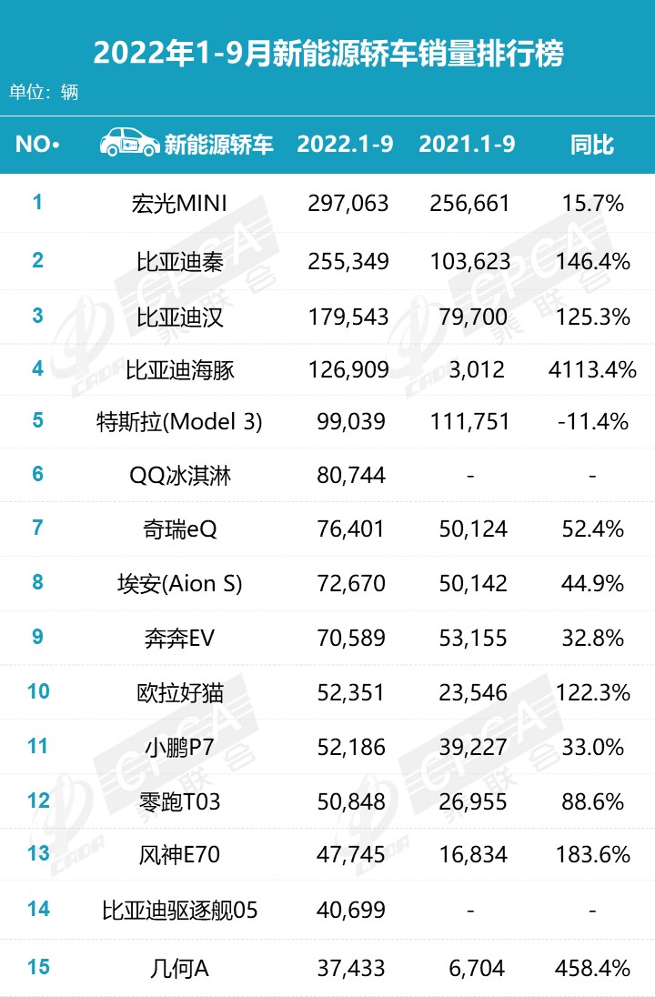 新能源轿车榜单