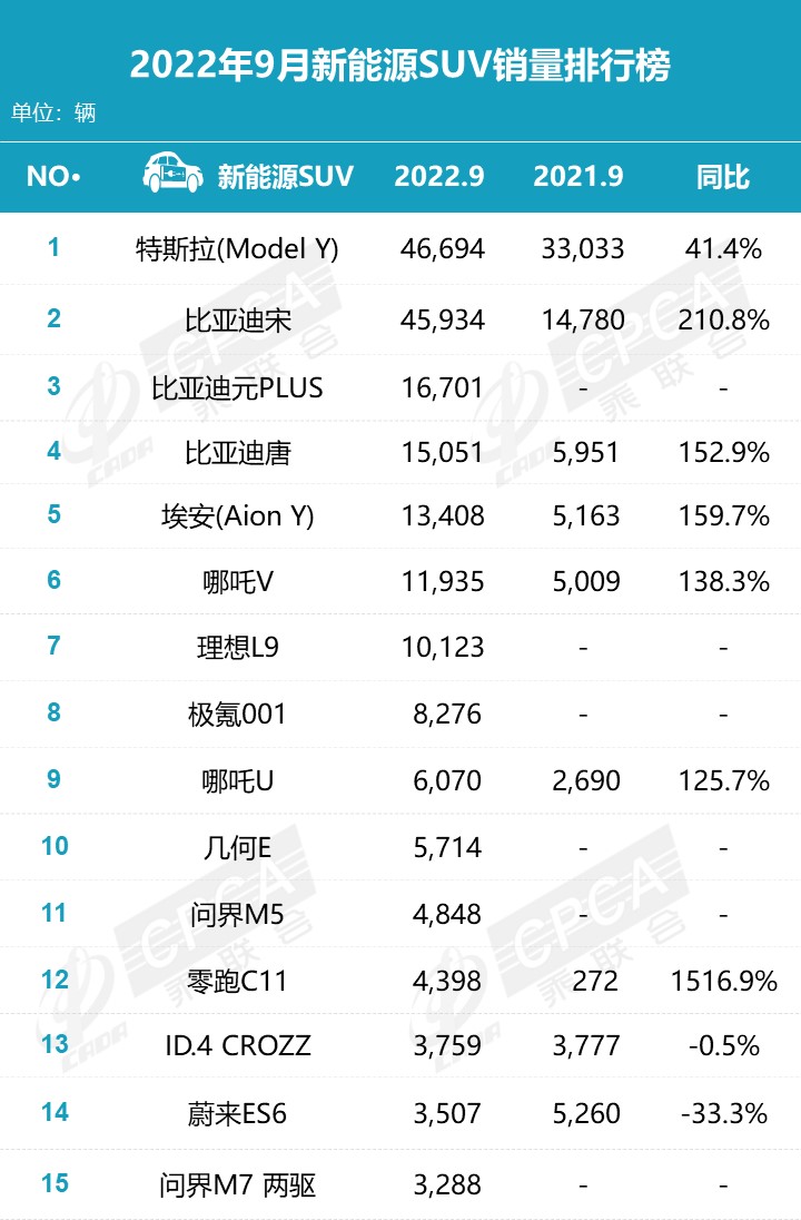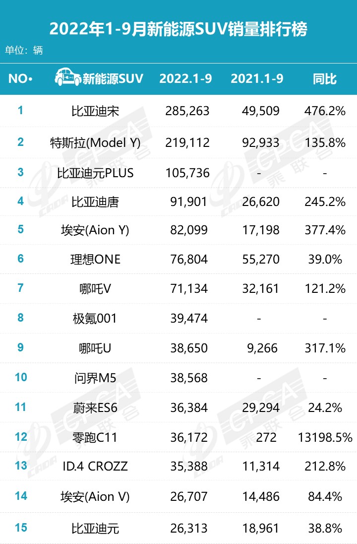 新能源SUV榜单
