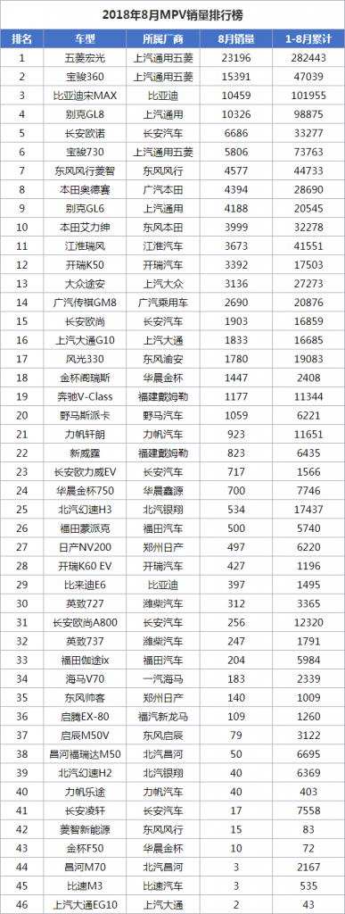 2018年8月汽车品牌销量排行榜 Other / 23 9 月, 2018 排名 汽车品牌 8月销量 1-8月累计 1 大众 255168 2028648 2 吉利 111848 931 2018年8月汽车品牌销量排行榜 Read More »